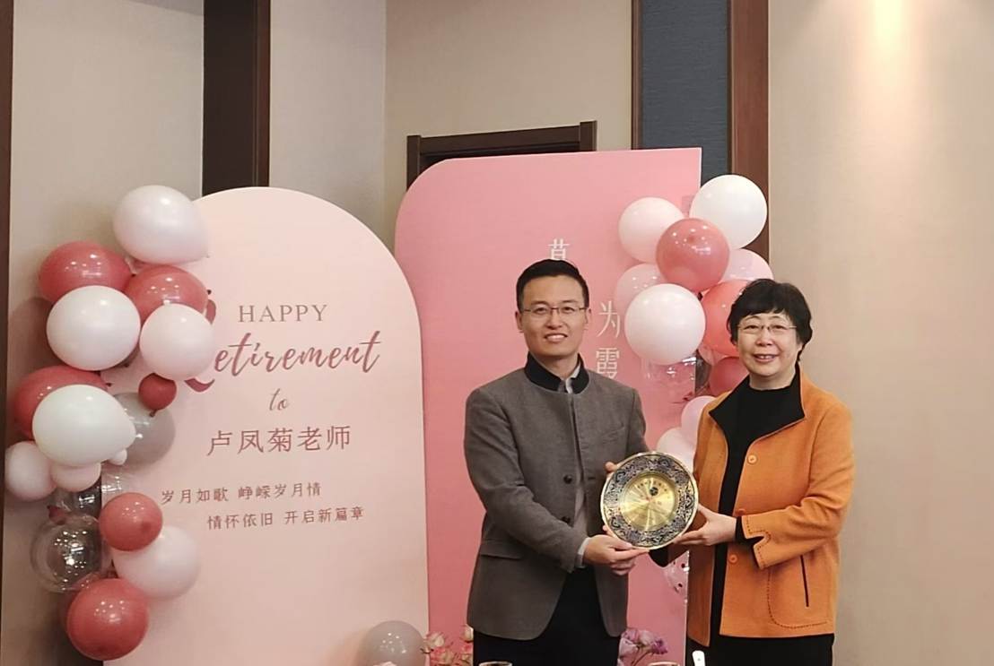 李祎为卢凤菊颁发了“荣休纪念铜盘”,并代表学院表达了对卢凤菊的感谢和祝福。王毅回顾了入职烟大以来卢凤菊给予的照顾、支持和帮助,并呼吁所有教职员工向卢凤菊学习,学习她严谨的工作态度和无私的奉献精神。教研室其他成员一一表达了对卢凤菊的感谢,并送去了最真诚的祝福。