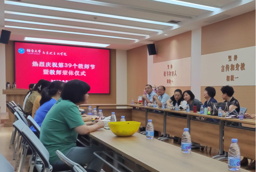 在305会议室举办庆祝第39个教师节座谈会暨马晓丽、陈惠春老师荣休仪式。学院院长王毅、党总支副书记杜德省、副院长郑炜及部分教师代表参加。中国近现代史纲要教研室主任孙蕾主持。