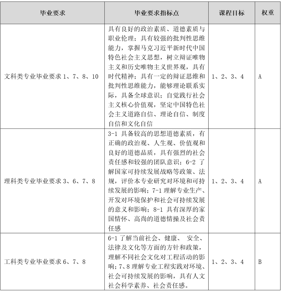 课程目标对专业毕业要求的支撑关系