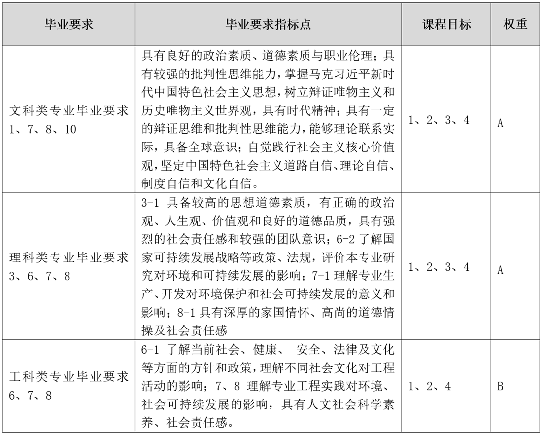 课程目标对专业毕业要求的支撑关系