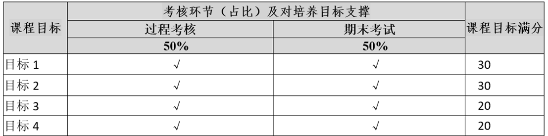课程考核环节与课程目标关系