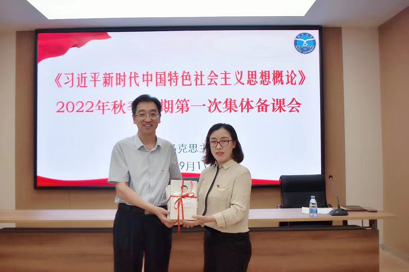在备课活动上,学院举行了简约赠书仪式。学院党总支书记王京强向思政课教师代表赠送《习近平谈治国理政》第四卷,要求广大思政课教师沉下心来学原著读原文,要把《习近平谈治国理政》第一至四卷作为一个整体来学习和理解,持续抓好学习,丰富课程教案,做好政治和思想引领工作。
