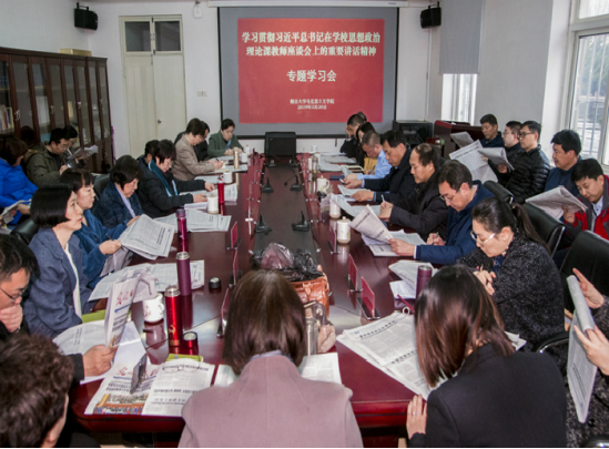 3月20日上午,九妖漫画 召开思想政治理论课教师专题学习会,学习贯彻习近平总书记在学校思想政治理论课教师座谈会上的重要讲话精神。党委副书记张殿臣出席会议,党委宣传部负责人、学院全体教师参加会议。