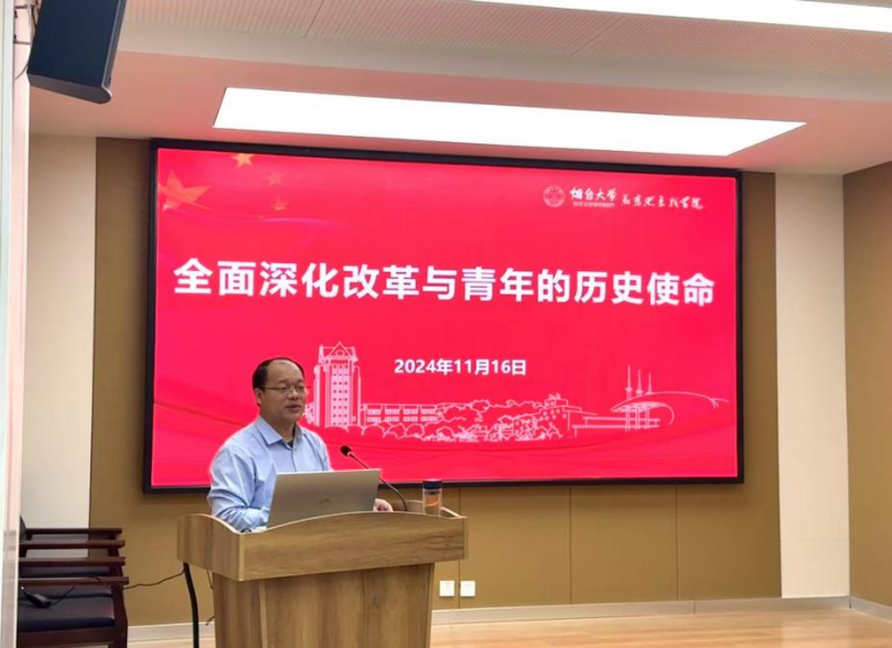 党总支副书记为全体研究生上“全面深化改革与青年的历史使命”专题党课,深入探讨了在当下全面深化改革的大背景下,青年所面临的机遇与挑战,以及所承载的历史使命。杜德省分别从“接续奋斗”、“青春特质”、“挺膺担当”三个关键词展开探讨青年历史使命问题,从不同角度阐述了青年作为新时代的主力军,如何在社会变革中发挥积极作用。