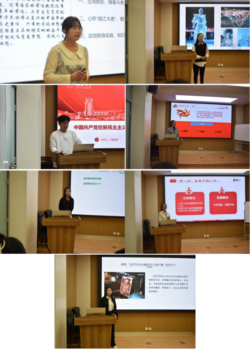 本次比赛经前期材料提交审核,最终有七位选手入选参赛。各位选手用扎实的基础知识、饱满的热情为大家呈现了一堂堂生动有趣、富有启发性的思政课。选手们或从当下热点出发,引导学生积极思考;或通过互动教学的方式,激发学生的学习兴趣和参与度;或以历史事件为切入点,深入浅出地阐述思政道理。