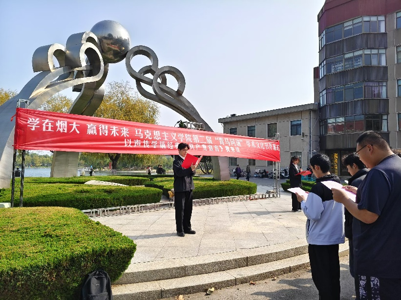 开幕式在“以声传学诵经典,《共产党宣言》我来读”活动中拉开帷幕,全体同学共同诵读《共产党宣言》节选段。