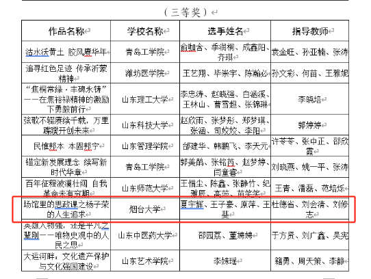 近日,山东省教育厅(省委教育工委)公布了第二届全省高校大学生讲思政课公开课展示活动评选结果,九妖漫画 作品《场馆里的思政课之杨子荣的人生追求》荣获三等奖。