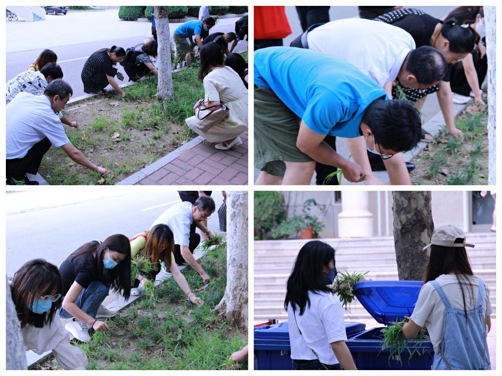 2022年8月25日上午,学院召开了2022级研究生开学典礼,开启“青马引航”研究生入学教育的序幕。典礼后,学院领导班子成员带领2022级全体研究生兴致勃勃前往学院新卫生区,共同参加义务劳动,开展杂草清除和卫生清扫工作。在劳动现场,师生一字散开,一起忙碌起来,细心清除行道树间绿化带内的杂草,耐心拾捡绿化带里的枯枝败叶,师生之间虽然是初识,但像老友旧,边劳动边交流,其情真真,其景融融,一道忙碌认真的身影,汇入了“香与韵、两清洁”的校园风景之中。在劳动中收获快乐,在交流中加深感情。学院党总支书记王京强在参加活动时指出,学院领导班子同新生同学一起参加义务劳动,这既是为建设美丽校园出一份力,更对于推动青年学生心中树立“劳动最光荣、劳动最美丽”的观念来说,意义重大。各位同学参加本次义务劳动是入学第一课,也是自己为学校建设做出的第一份贡献。大家都要做文明校园建设的实践者、推动者,持之以恒,久久为功,让我们的“烟园”更美丽、校园环境更美好。