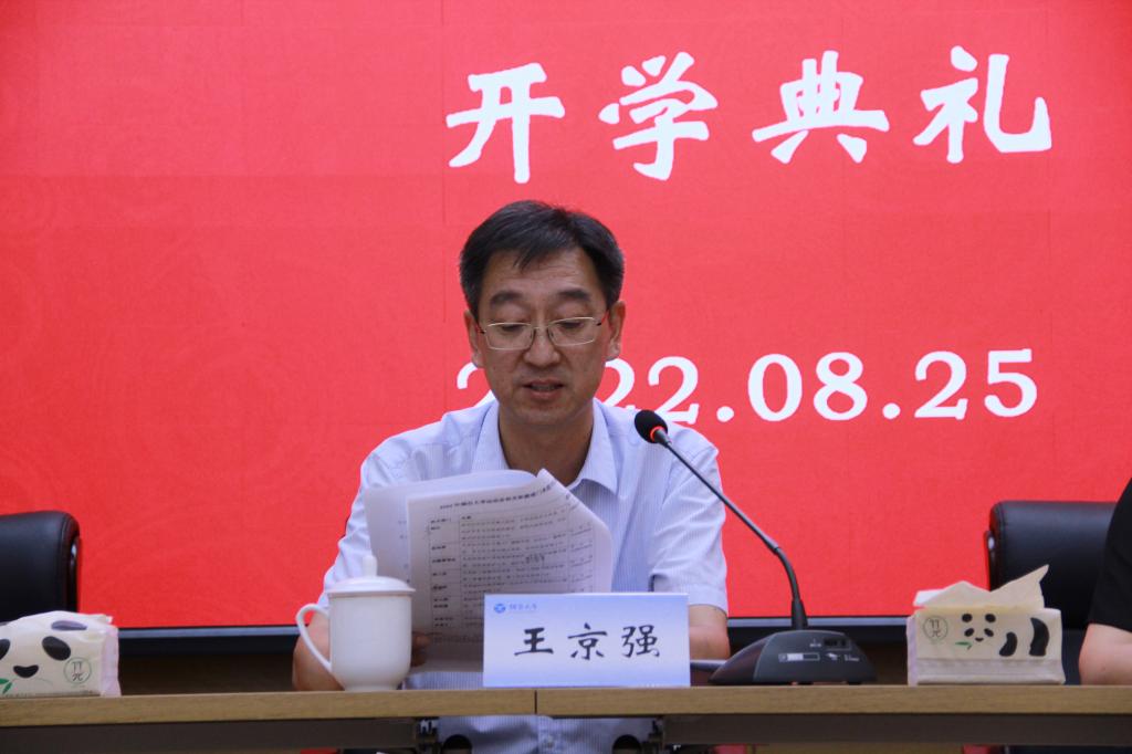 在庄严的国歌声中,开学典礼正式开始。院党总支书记王京强致辞,代表学院对2022级新生的到来表示热烈欢迎和诚挚祝贺。他从当今世界百年未有之大变局的独特视角出发,指出新时代中国青年要坚定理想信念,弘扬爱国精神,勇于担当尽责,坚持苦干实干,在时代洪流中找准自己的坐标。同时,作为烟大马院学子,更要将烟大精神内化于心、外化于行。