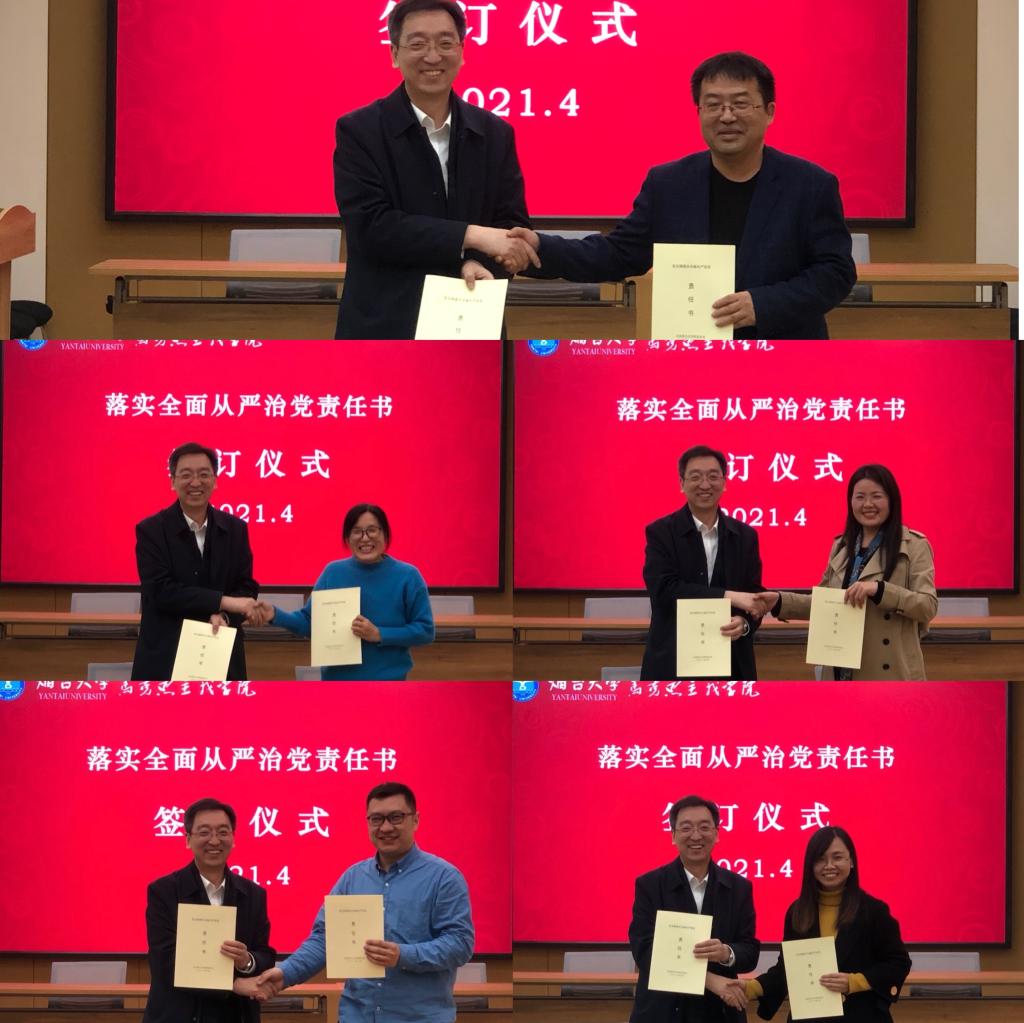 举行全面从严治党责任书签字仪式,院党总支分别与各教工党支部签订2021度全面从严治党责任书,进一步贯彻学校2021年党风廉政建设工作会议精神。会议由院党总支书记王京强主持。