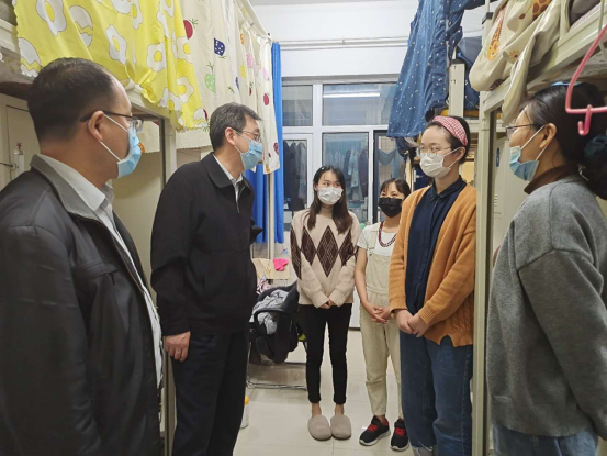 迎来了首批返校复学的研究生。为了帮助同学们调整好心态,尽快适应校园学习生活,5月23日下午,学院党总支书记王京强、副书记杜德省来到学生宿舍,为同学们送来了关怀和防疫礼包。
