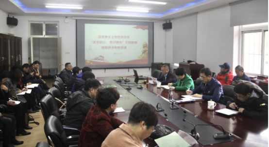 党总支书记王京强在文科馆135会议室,讲授题为“坚守初心,勇担使命,奋发有为,不断把新时代思想政治理论课改革创新推向新阶段”的主题教育专题党课,学校第二指导组姜丽岳、赵建伟出席,学院全体党员和思政课教师参加,院长李国栋主持。