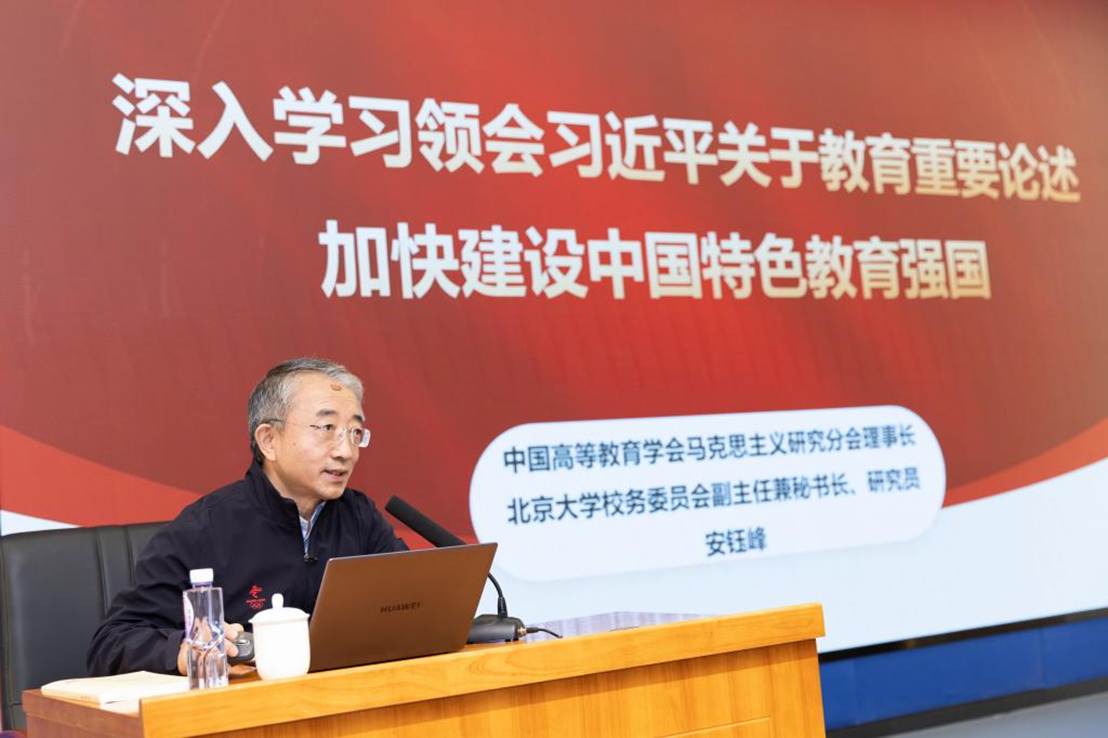 安钰峰以习近平总书记关于教育的重要论述引领中国特色教育强国高质量发展为主题,深刻阐释了建成教育强国在全面推进强国建设、民族复兴伟业中的重要地位,从政治属性、人民属性、战略属性三个维度系统剖析了中国特色教育强国的科学内涵,从贯彻落实好“九个坚持”和正确处理五个“重大关系”方面阐明了加快推进教育强国建设的重要抓手,为马克思主义理论学科和高校思想政治理论课在新时代的发展提供了思路和遵循。