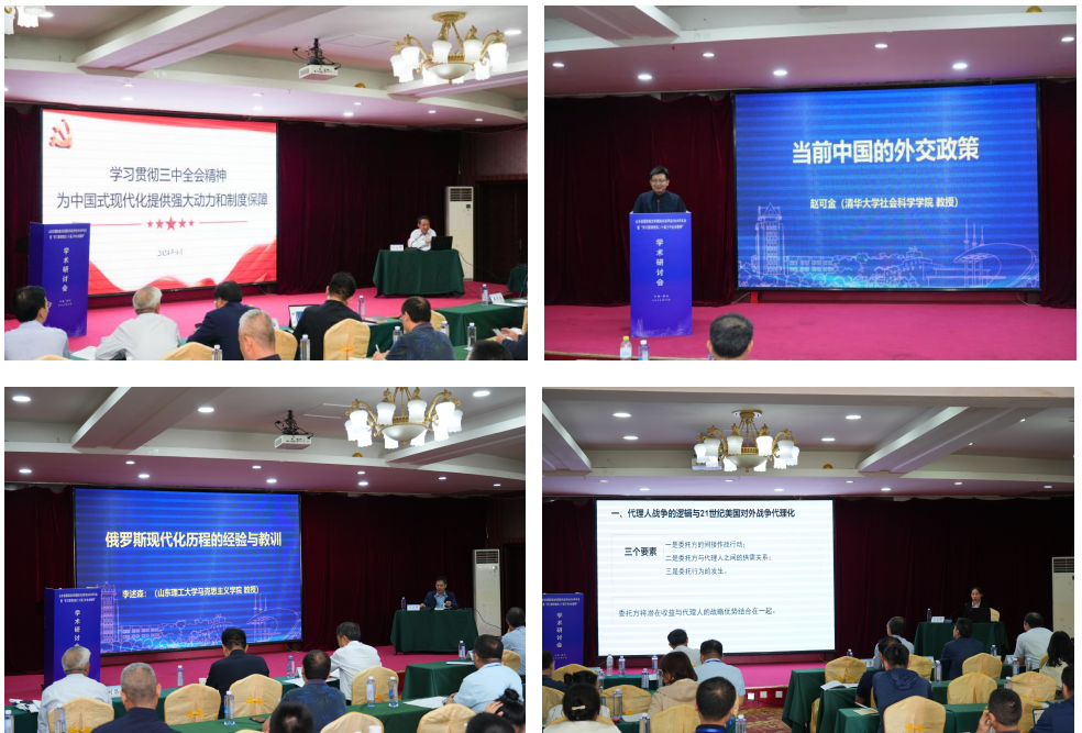 专家主旨报告期间,山东省委党校殷玉平教授、清华大学社会科学学院赵可金教授等5位专家作主旨报告,分别就学习党的二十届三中全会精神、当前中国的外交政策、俄罗斯现代化历程的经验与教训、美国代理人战争新动向以及广泛凝聚进一步全面深化改革共识等问题进行了深刻的解读。