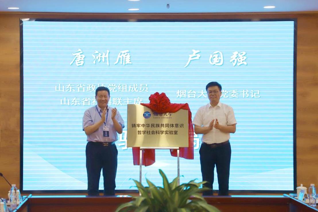 党委常委、副校长冯素玲等出席活动;有关省(自治区、直辖市)社科联、山东省直和烟台市直部门单位负责人参加。会上,唐洲雁、卢国强共同为铸牢中华民族共同体意识哲学社会科学实验室揭牌,冯素玲代表学校与实验室指导委员会成员单位签署共建协议。来自省内外有关高校、科研机构的60余名专家学者,共同见证哲学社会科学实验室成立。