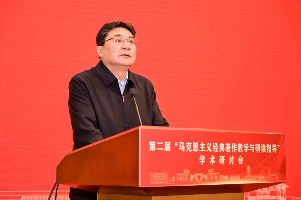 高规格、高水平的承办,并指出,本次会议立足时代需求,结合学科发展实际,回应师生关切,体现了马克思主义经典著作研读与教学对于真正了解和把握马克思主义中国化时代化最新成果的重要意义。他强调,必须科学把握马克思主义经典著作的现实意义与时代价值,牢牢掌握运用马克思主义基本观点、方法,提高分析和解决问题的能力,为全面建成社会主义现代化强国、以中国式现代化全面推进中华民族伟大复兴不断贡献理论力量。