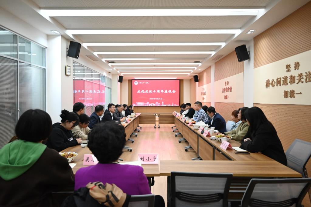 庆祝建院十周年座谈会在学院305会议室举行。学院领导班子成员、原学院领导、荣休教师代表、校友代表及在校师生代表参加座谈。座谈会由学院党总支副书记陈雷主持。